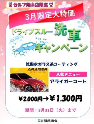 セルフ青山店限定 ドライブスルー洗車キャンペーン開催中📢